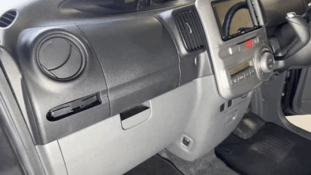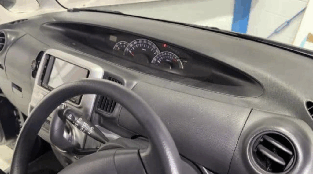 ダッシュボード全体にうっすらとホコリが積もり、日差しで浮き出た手垢が目立っていました。