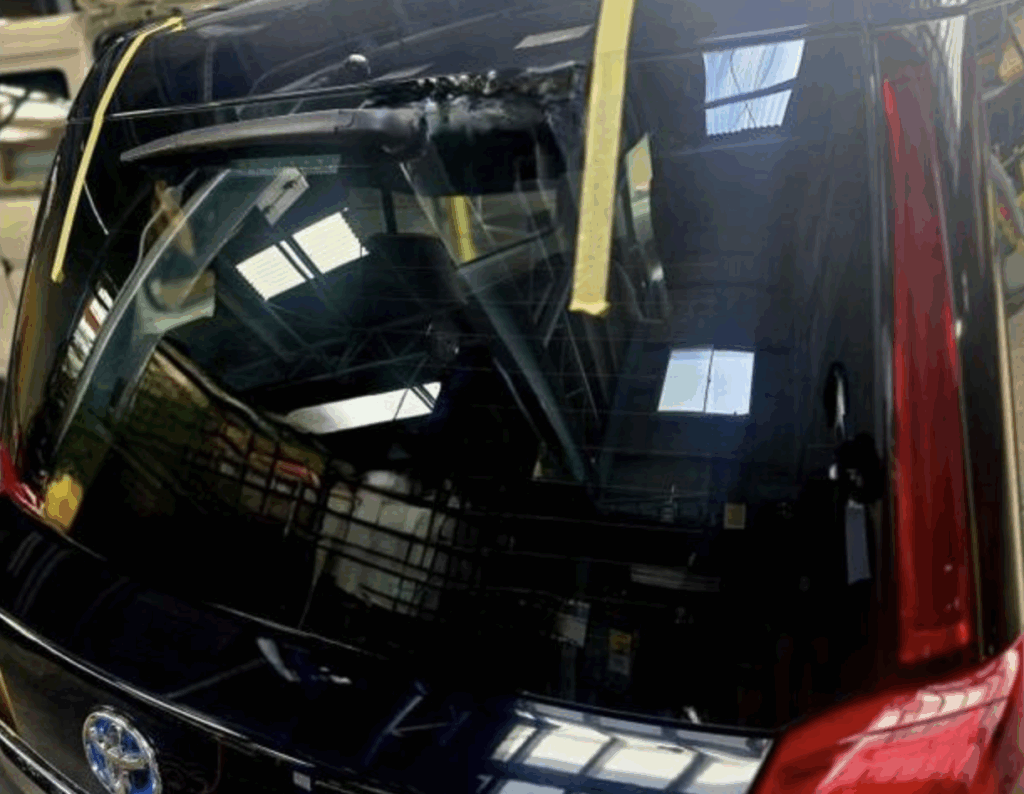 リアガラスは「強化ガラス」が使用されているため、一度割れると粉々に砕け散る特徴があります。そのため修理ではなく、ガラス交換が必要となります。走行中の飛び石や事故、急激な温度変化による破損も少なくありません。