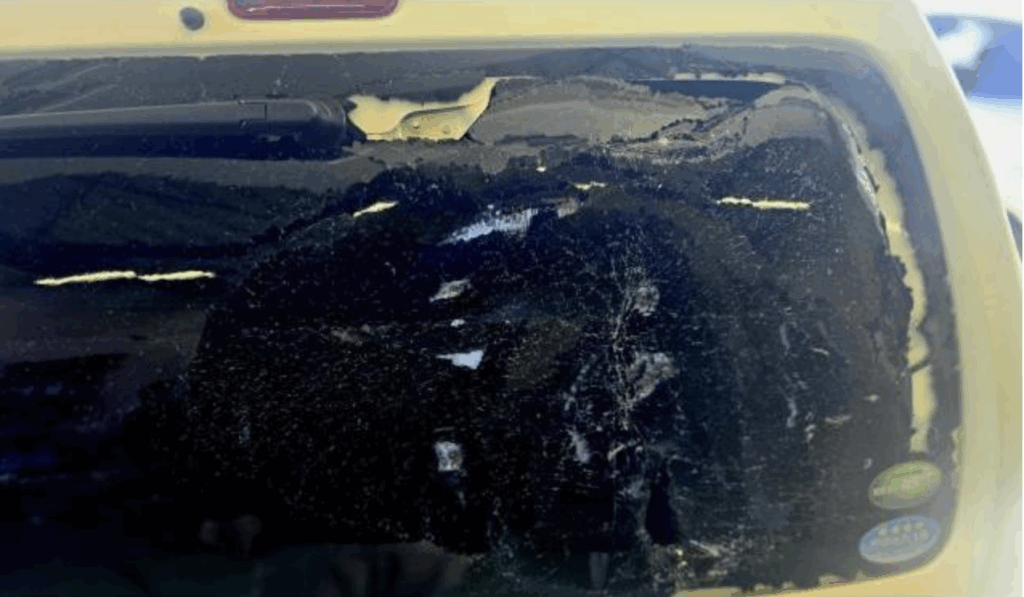 リアガラスの割れは、バック時の接触や温度変化などで突然発生することがあります。