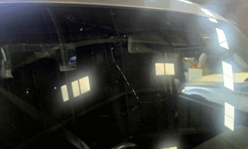 【症状】飛び石によるフロントガラスの割れ